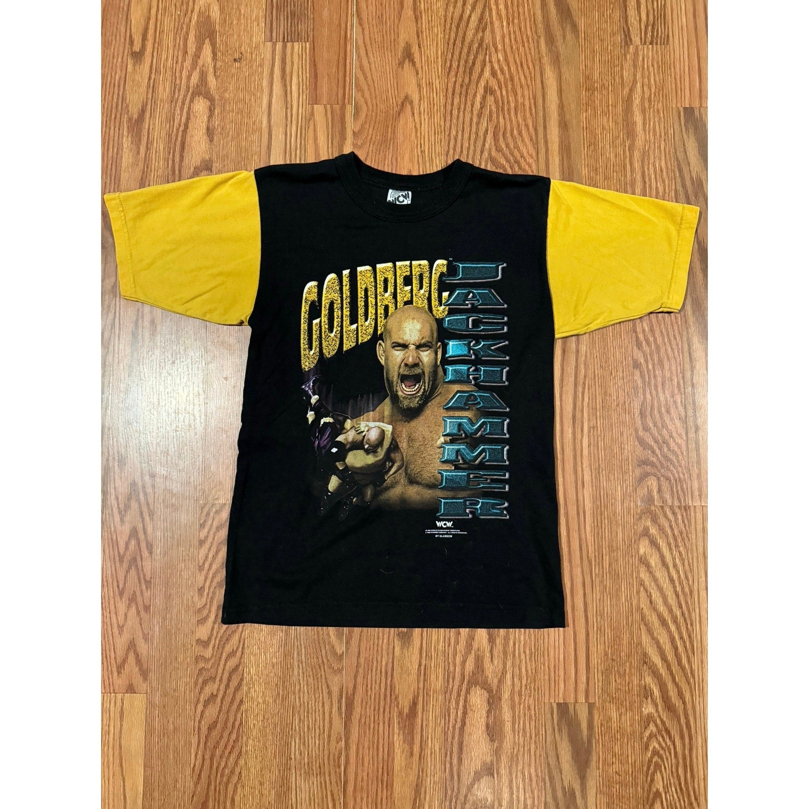 True Vintage 90s Goldberg Jackhammer w/ yellow Sleeves on a WCW tag super rare and hard to find with these sleeves!